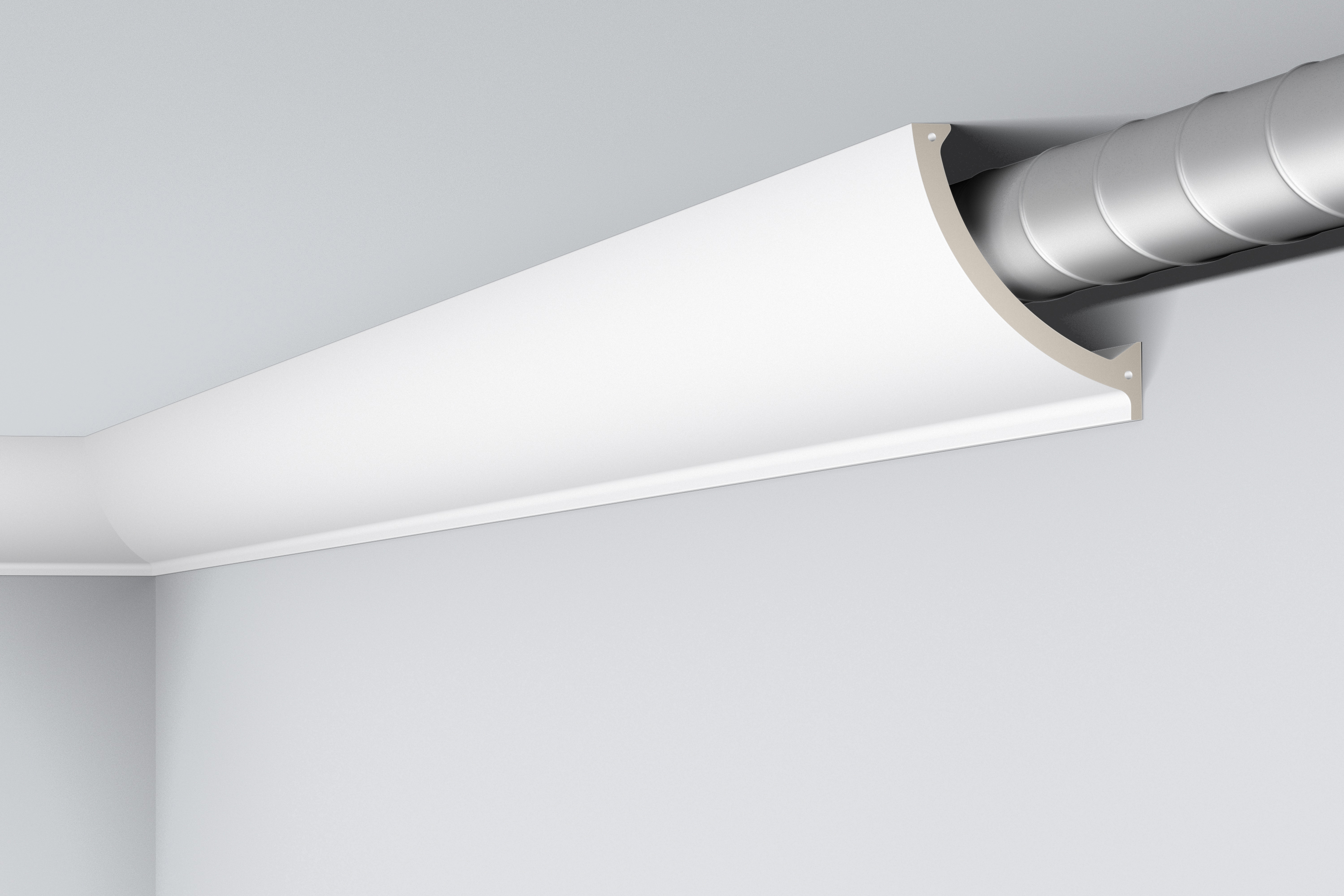 Listwa o charakterze użytkowym, idealnie sprawdza się jako maskownica rur lub profil służący do montażu oświetlenia pośredniego.